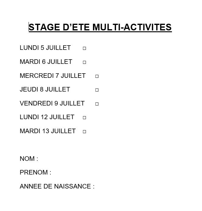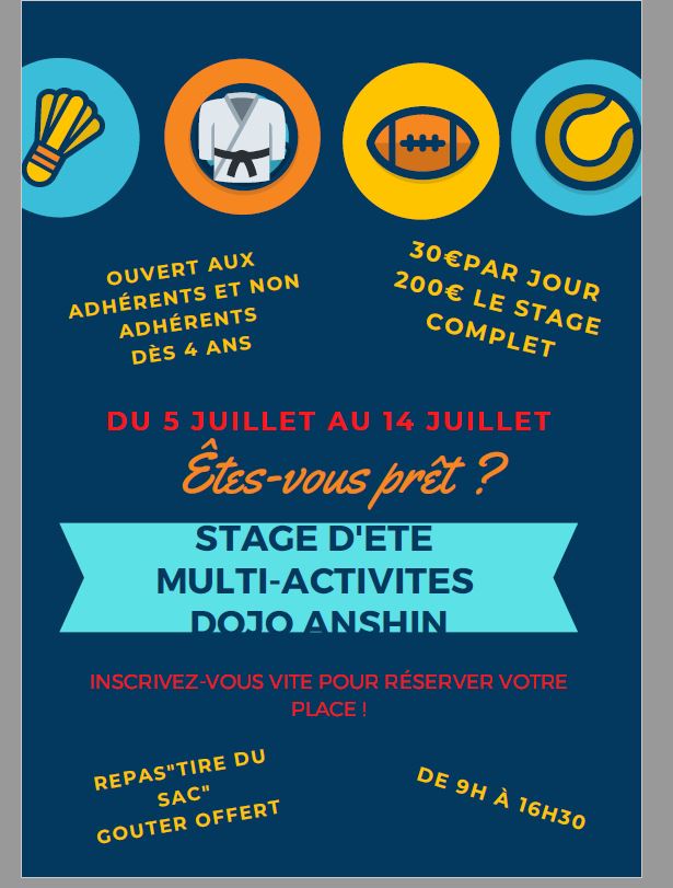 PERMANENCE INSCRIPTIONS : SAMEDI 26 JUIN DE 10H A 12H au DOJO