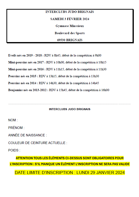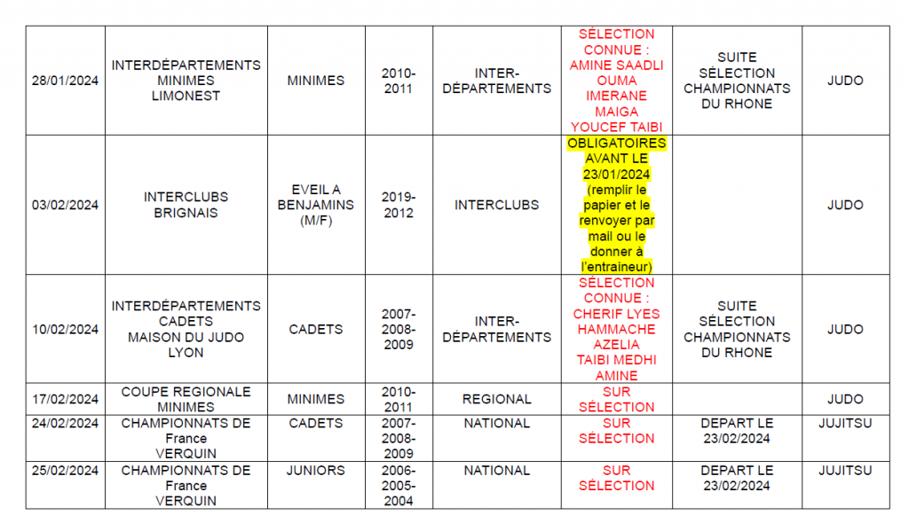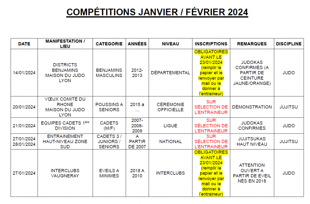 COMPÉTITIONS JANVIER – FÉVRIER 2024